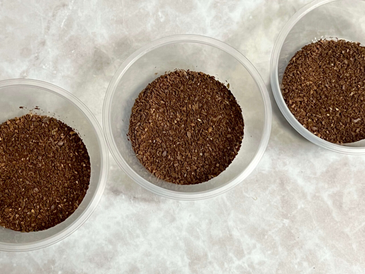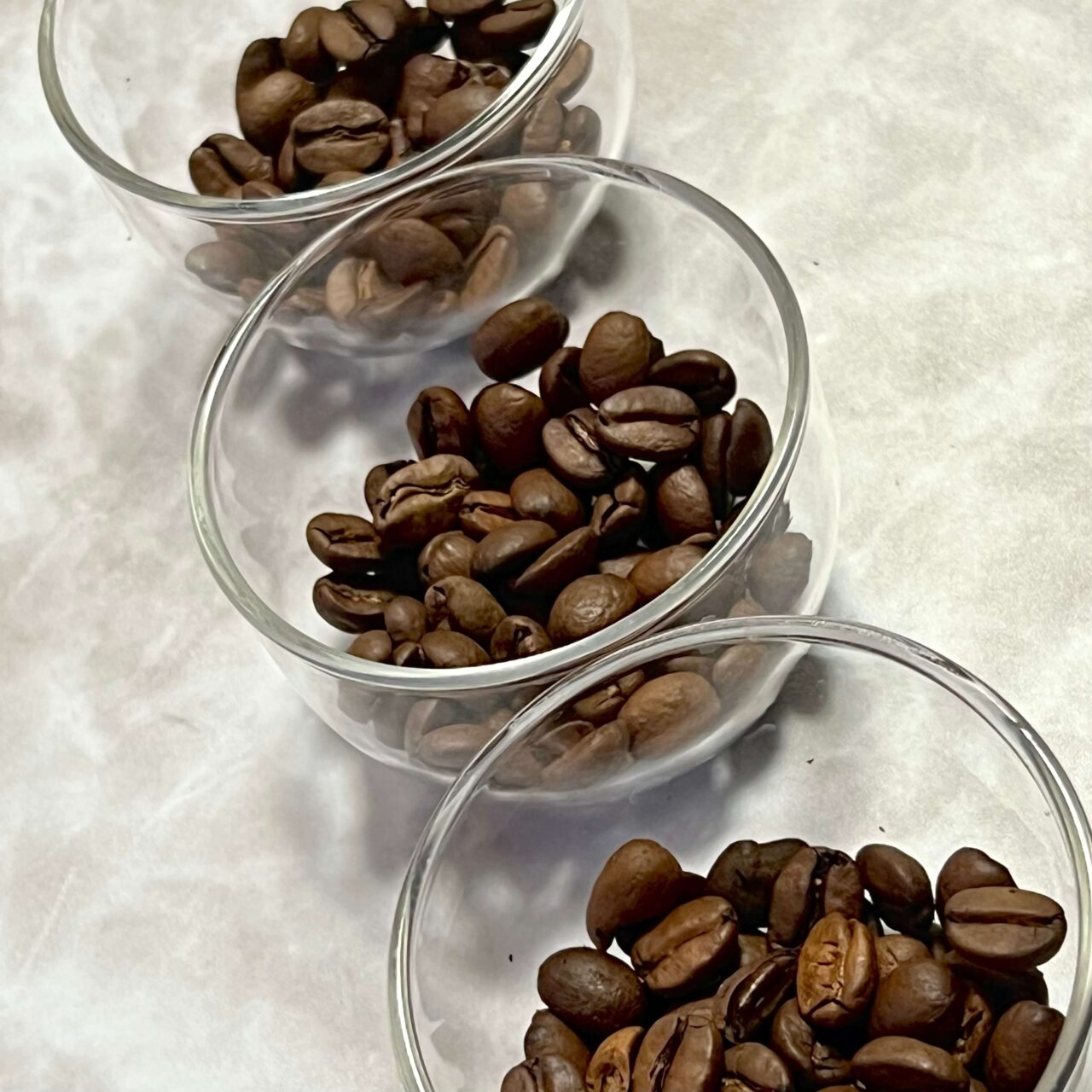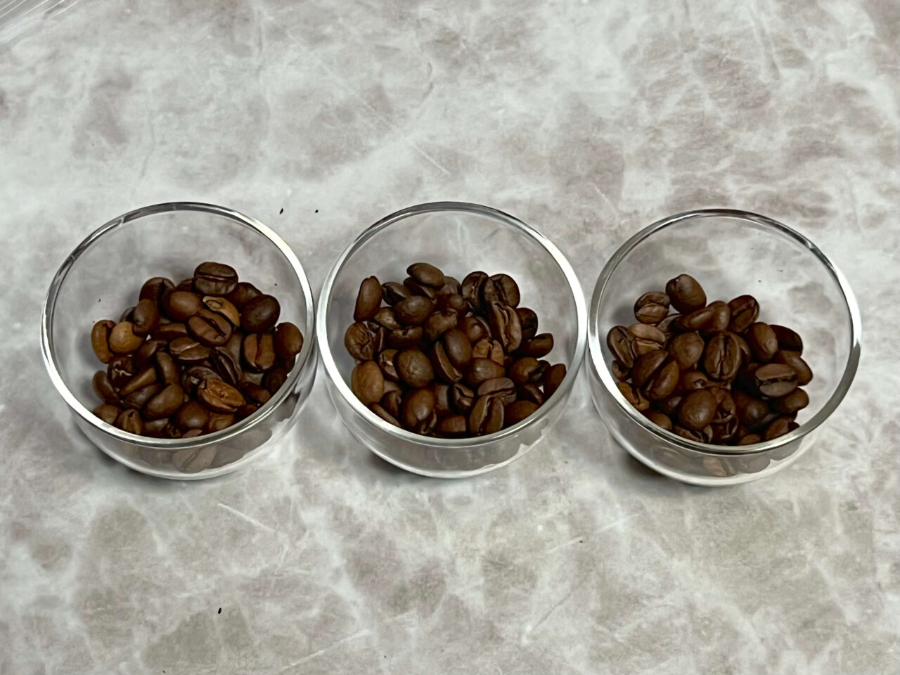 講習会で配布された豆は、焙煎時に明度(L値)を合わせてあるようで、豆の状態の豆面にはほとんど差がありませんでした。