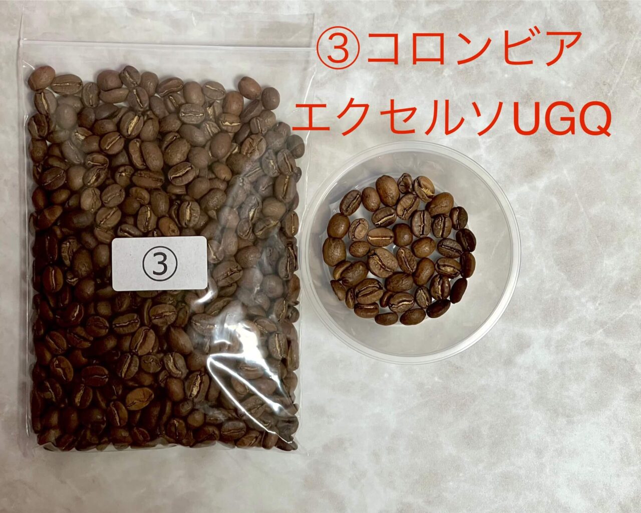 カッピング練習の3日目は、コロンビア UGQ とインドネシアのカネフォラ2種(WIB-1、AP-1)の比較です。